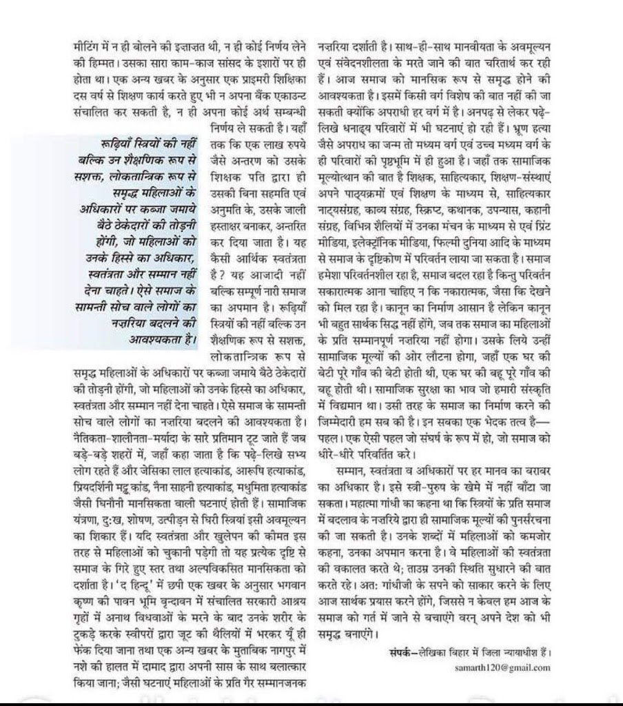 Hindi Article on the Status of Women (Indian Context)- By Pratibha Chauhan